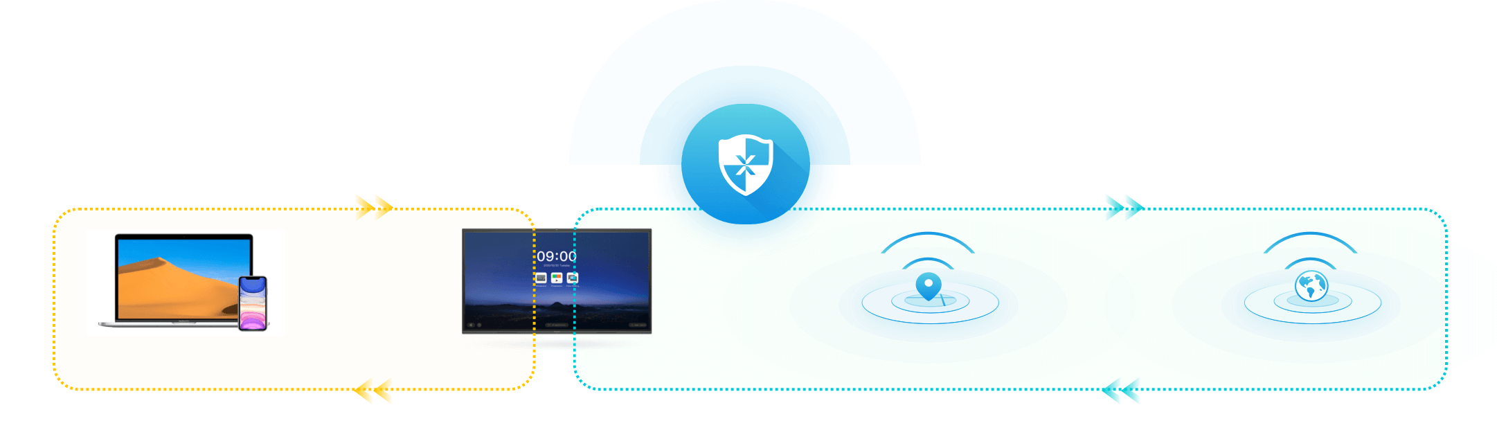 Hotspot Shield bảo vệ quyền riêng tư của người tham gia khi khách được mời tham gia cuộc họp. Ngay cả khi khách truy cập kết nối với điểm phát sóng của màn hình tương tác để chia sẻ màn hình không dây, họ sẽ vẫn bị ngắt kết nối với bất kỳ mạng nội bộ nào, cung cấp cho các công ty một lớp bảo vệ khác.