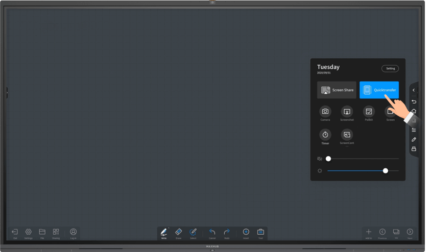 Với thao tác vuốt đơn giản, bạn có thể trượt từ bảng tương tác MAXHUB sang bảng thứ hai cung cấp nhiều mẫu khác nhau cho trang chào mừng cũng như các tính năng tùy chỉnh.