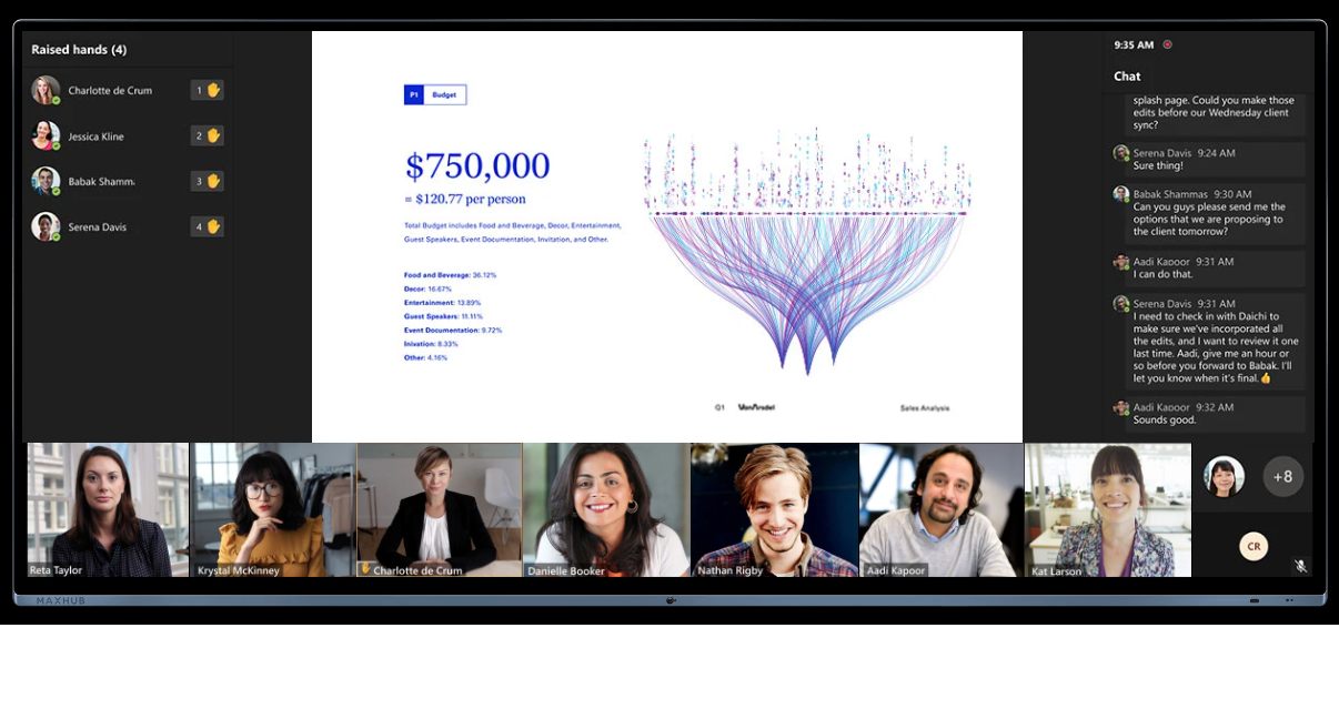Đặc biệt, MAXHUB UW Series được tối ưu hóa cho Microsoft Teams, mang đến trải nghiệm họp trực tuyến mượt mà, liền mạch và hiệu quả hơn bao giờ hết. Giao diện được thiết kế riêng biệt để phù hợp hoàn hảo với tỷ lệ khung hình 21:9, giúp người dùng tận hưởng cảm giác cộng tác chân thực, trực quan và trọn vẹn hơn — dù đang họp từ xa hay trực tiếp trong phòng